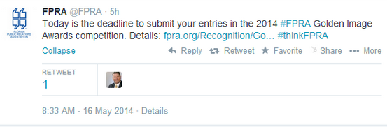FPRA does a great job of utilizing hashtags for their benefit. While the hashtag “#thinkFPRA” is not necessarily specific to their program, it is being used to encourage engagement with the organization. And if you look at the history of the hashtag, you can see it’s working! People are using it and interacting with the organization.